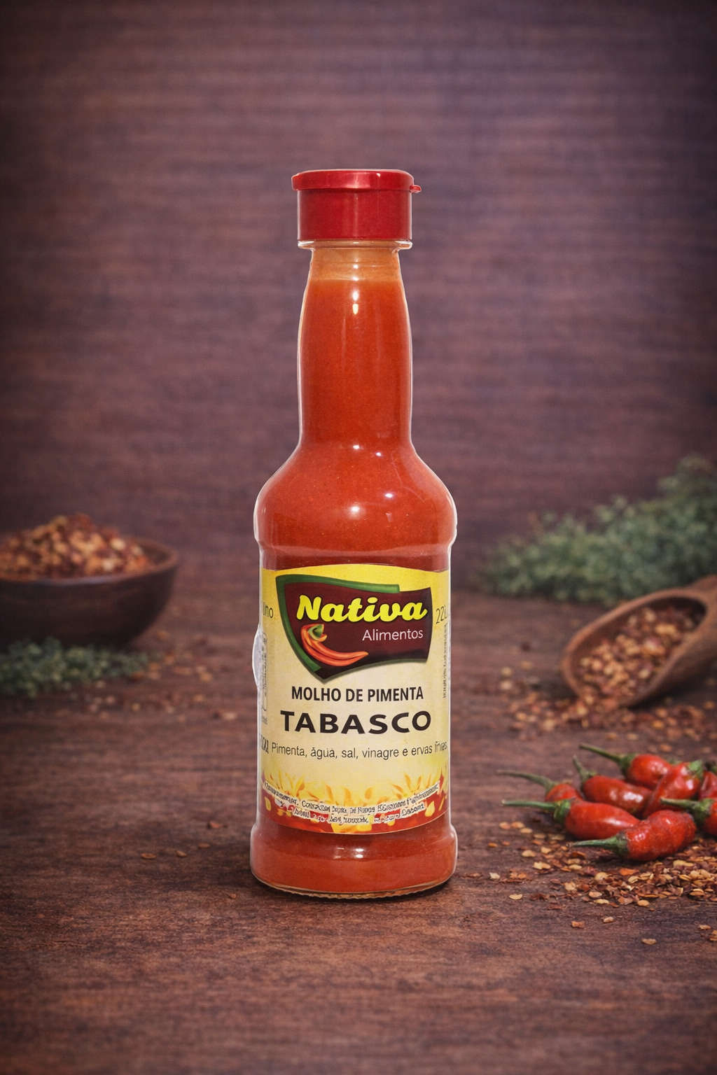 DESCRIÇÃO: Utilizado como condimento em vários tipos de pratos, acrescenta um sabor mais picante as receitas. Pode ser utilizado como ingrediente ou adicionado diretamente nos pratos. INGREDIENTES: Pimenta, vinagre, tomate, sal, especiarias, realçador de sabor glutamato monossódico, acidulante acido cítrico. CONTÉM GLUTÉN*. NÍVEL DE ARDENCIA: Intermediário INFORMAÇÃO NUTRICIONAL: INFORMAÇÃO NUTRICIONAL porção de 10ml (1 colher de sopa) Quantidade por porção: % VD (*) Valor energético: 0 kcal = 0 kJ 0% Carboidratos: 0 g 0% proteínas: 0 g 0% Gorduras totais: 0 g 0% Gorduras saturadas: 0 g 0% Gordura trans: 0 g (**) Fibra alimentar: 0 g 0% sódio: 304 mg 13% ()% Valores diários de referência com base em uma dieta de 2.000 kcal ou 8.400 kJ. Seus valores diários podem ser maiores ou menores dependendo de suas necessidades energéticas. (*) VDnão estabelecido.