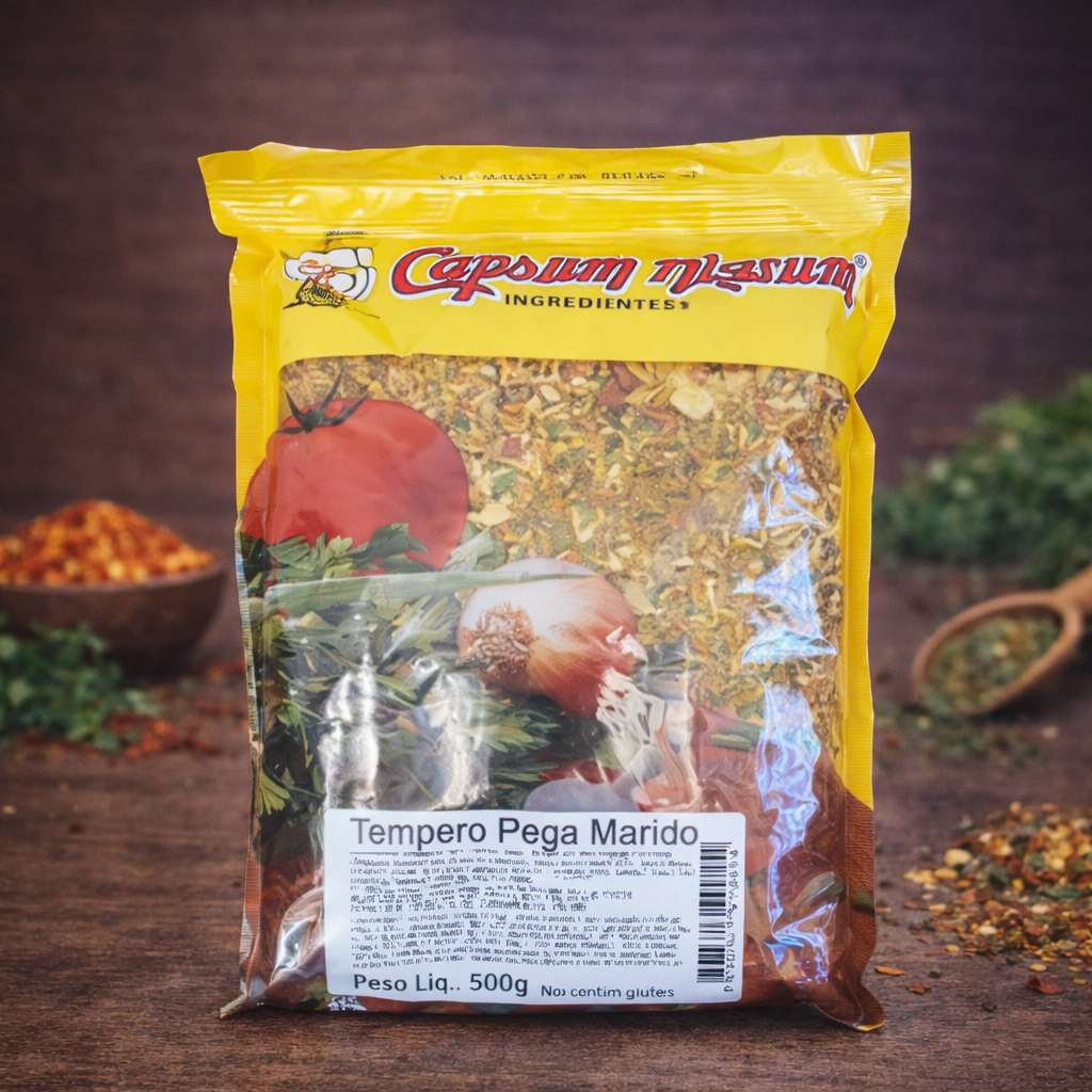 Ingredientes: Mostarda, alho, cebola, salsa, tomate, sal, óleo vegetal, cúrcuma, realçador de sabor glutamato monossódico, fubá, antiumactante AUIII, ácido cítrico, urucum, açúcar, feno grego, gengibre, cominho, pimenta preta, coentro, cravo, noz moscada, pimenta calabresa, louro e canela. Não contém glúten